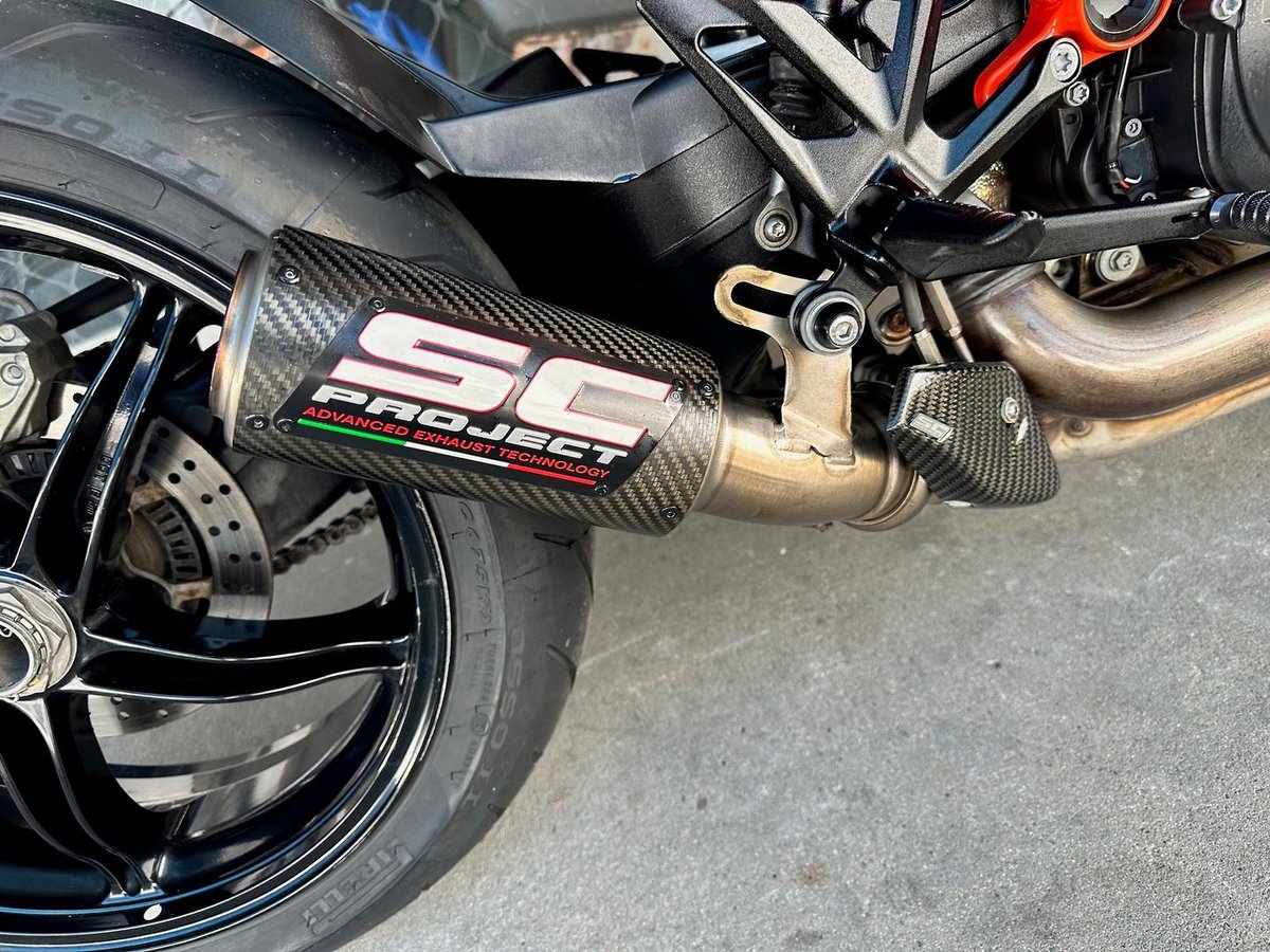 • Front Brake Description: Twin disc; Brembo radial mounted M50 monobloc calipers; Hydraulic; Bosch 9.1MP Cornering/Supermoto mode disengagable ABS